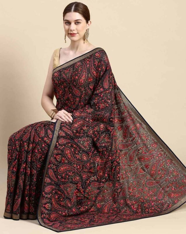 Women’s Net Embroidery Sequin work Saree with Blouse Piece