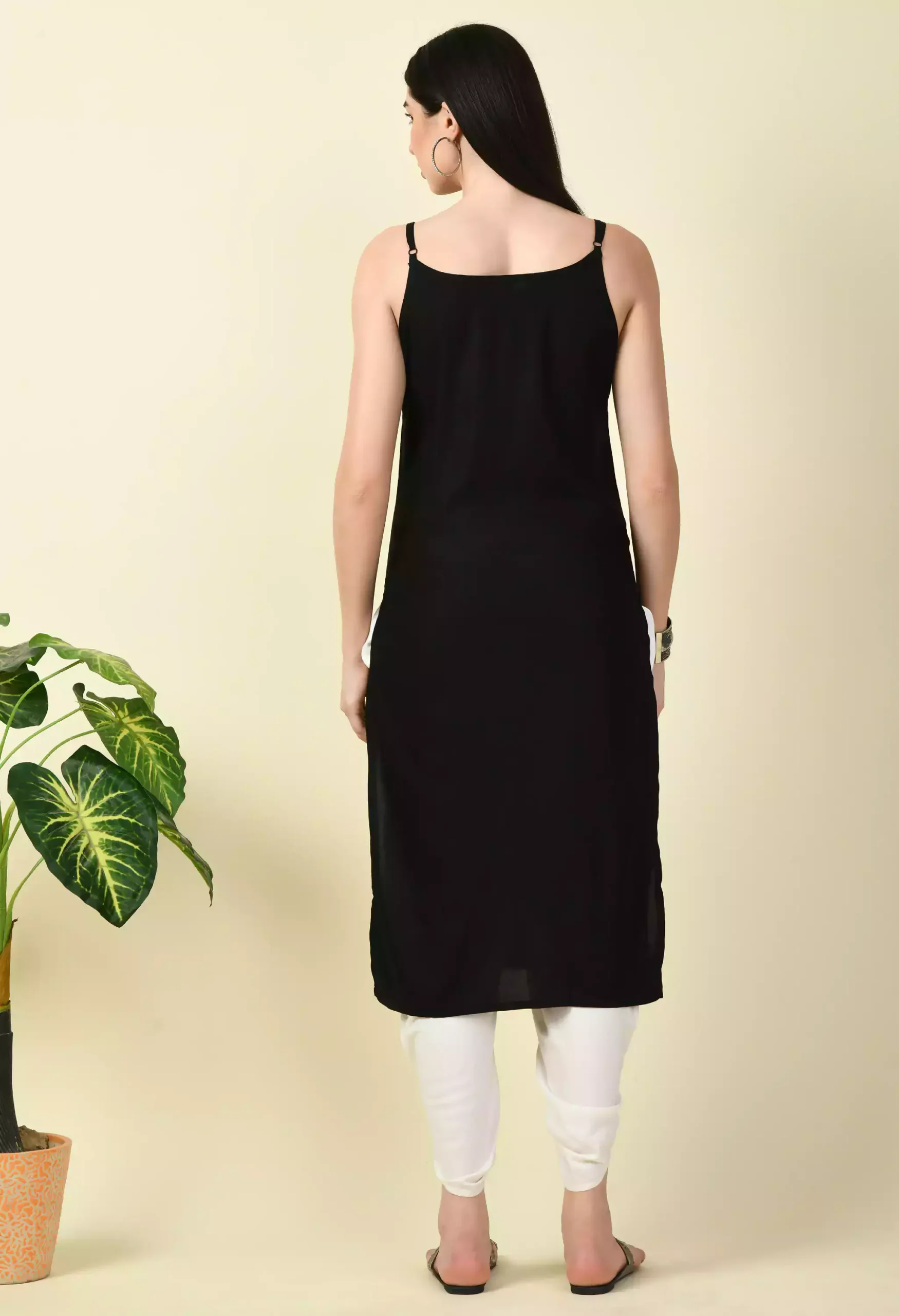 Home Kurtis Black Pashmina Work Sleeveless Kurti