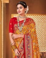 • This saree is made from silk. Saree with blouse piece, which can be stitched according to your taste and preference. This saree is crafted by skill craftsmen without compromising on its quality. With this beautiful design and fabric, this saree will fetch you oodles of compliments and praise.