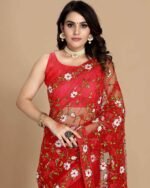 - The last image gives a detailed look of the blouse piece that comes with this saree (The model is wearing a blouse from our in-house wardrobe)