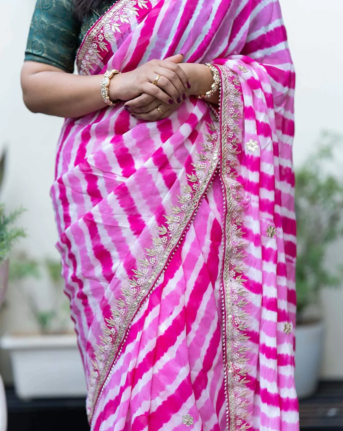 • Blouse colour – Green blouse piece with gota patti handwork on back and sleeves