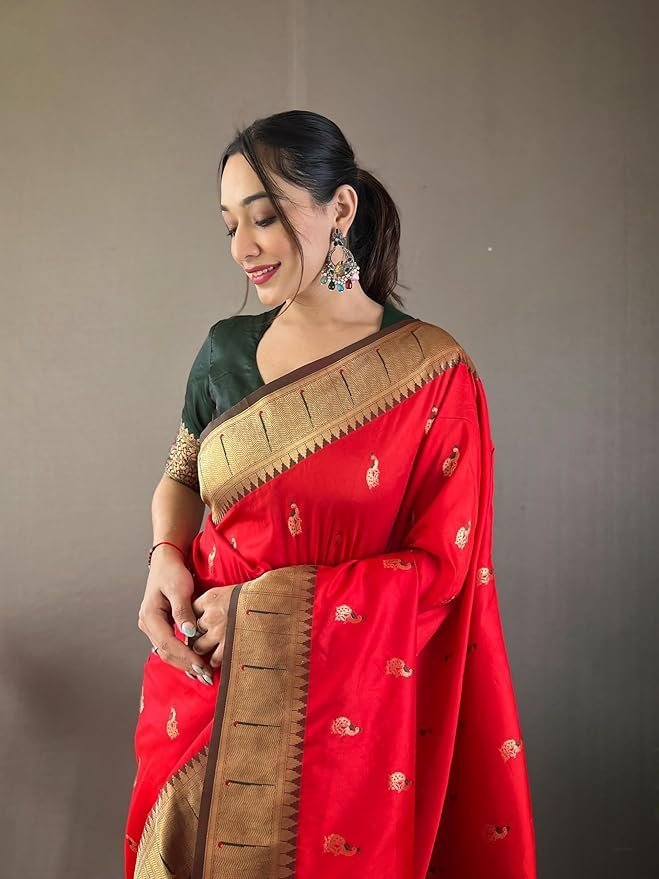 Women’s Paithani Silk Saree With Blouse Piece